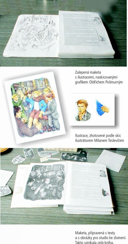Čím víc se blížil konečný termín, stanovený pro odevzdání knihy tiskárny, tím se schůzky staly častější a Milan Teslevič docházel do mého ateliéru, kde se schůzky konaly, nejen v pondělí a v pátek, ale i v další dny, aby mi předal i jen několik ilustrací, které bych mohl naskenovat a zalepit do makety.