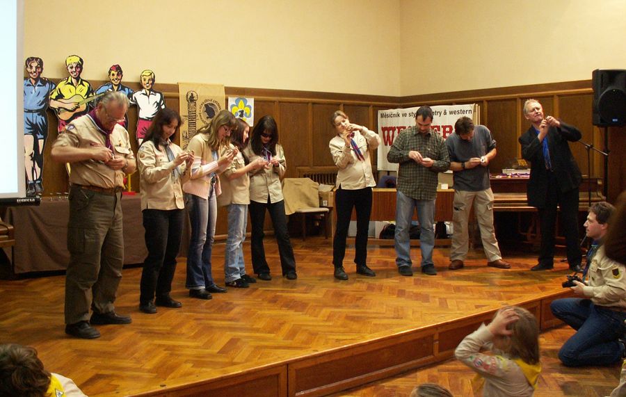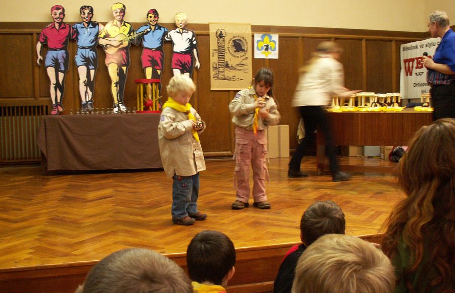 Memoriál Jana Tleskače posedmé[ Autor: Slavomil Janov - Nashville | zařazeno: 28. 11. 2007 | přečteno 21541 ] V galarouše ušitém k cyklu vzpomínkových akcí ke 100. výročí narození Jaroslava Foglara a s několika novinkami i překvapeními se v sobotu 24. listopadu 2007 uskutečnil ve společenském sále Benediktinského opatství v Praze 7. ročník Memoriálu Jana Tleskače ve vyjímání ježka z klece. Tak jako v šesti předchozích kláních nesla i letošní soutěž visačku mistrovství světa v této netradiční „sportovní“ disciplíně. O mezinárodní dimenzi akce se na kolbišti v areálu kláštera Emauzy postarali kromě soutěžících z České republiky i reprezentanti čtyř dalších zemí – Slovenska, Bosny a Hercegoviny a premiérově i zástupce z Apeninského poloostrova a Srbska. Vyvěšením vlajek posledně dvou jmenovaných států dosáhl počet zemí, které v průběhu sedmi ročníků vyslaly do Prahy své zástupce, již téměř půl druhé desítky, přesněji přímo legendární foglarovské „třináctky“. Bilance startujících v celé dosavadní historii Memoriálu Jana Tleskače ve vyjímání ježka z klece je tak skutečně úctyhodná: téměř 1500 borců ze tří kontinentů – Asie, Evropy i Oceánie (Austrálie, Bosna a Hercegovina, Česko, Itálie, Maďarsko, Makedonie, Mongolsko, Nizozemsko, Polsko, Rusko, Slovensko, Srbsko a Ukrajina). A to ještě letos do Emauz nedorazili reprezentanti tří zemí, které o start na MS projevili v předchozích dnech značný zájem – afrického Senegalu, Francie a USA… Na půl druhou stovku účastníků soutěže a dalších návštěvníků akce, kteří zůstali jen v pozici diváků, čekaly v Emauzích standardní kulisy v podobě figurín Rychlých šípů a obřího ježka v kleci v průčelí arény, ale i několik nových dekorací. Hlavní byla bezesporu figurína Jana Tleskače, který se v sále vznášel (pověšen na horolezeckém laně) na svém létacím kole. V „nákupním centru“ bylo možné získat řadu stylových suvenýrů. K nejzajímavějším patřila limitovaná kolekce vánočních ozdob se symboly ježka v kleci a listů ginkga, nebo neméně exkluzivní originální skleněný ježek v kleci (o obou novinkách píše Bohoušek v samostatném článku). Zdi sálu zdobilo několik fotografických panelů, na nichž byly vystaveny fotografie ze všech předchozích ročníků Memoriálu, dále momentky z vyjímání ježka z klece skauty mnoha zemí na Světovém jamboree 2007 ve Velké Británii, ale i budhistického náboženského vůdce Dalajlámy, který se s foglarovským hlavolamem popral při své návštěvě Česka v roce 2002 v prezidentském zámku v Lánech. Již tradičně zájemcům kreslil obrázky Milan Teslevič. V polední přestávce se zájemci odebrali k nedalekému rodnému domu Jaroslava Foglara v Benátské ulici a zašli též ke dvěma gingům do protilehlé Botanické zahrady. Více než výzdoba sálu či nabídka suvenýrů však většinu účastníků akce zajímala pochopitelně samotná soutěž. I ta však letos prošla výraznou kosmetickou kúrou, která podobu a průběh světového šampionátu oproti posledním ročníkům v nemalé míře pozměnila, ale především kvalitativně posunula o další krůček kupředu. Poprvé se totiž soutěžilo s hlavolamem zahraniční výroby – německým ježkem v kleci značky Philos. Ten je sice na první pohled velice blízký dosavadnímu českému hlavolamu značky Hron, ale poněkud odlišná konstrukce ježka (velikost ostnů) z něj činí podstatně tvrdší oříšek. Tomu byl proto přizpůsoben i časový limit na vyjmutí – ze tří se prodloužil na pět minut. Organizátoři se vrátili i k osvědčenému modelu z úvodního ročníku memoriálu – doplňkové kvalifikaci čili baráži. V ní si měli možnost vybojovat účast ve finálové skupině (oproti původní osmičce se rozšířila na tucet míst) méně úspěšní „vyjímatelé“ ježka z klece z eliminace. O tom, jak z této staronové soutěžní varianty vytěžil maximum mezi bezmála stovkou soutěžících zejména dvojnásobný mistr světa a držitel světového rekordu s hlavolamem Hron (3 sekundy) Jan Trojan, je zřejmé z výsledkové listiny. Přitom při zachování starého modelu eliminace by „profík Roy“ zůstal po základní části soutěže už mimo hru… V boji s náročným hlavolamem, který se ukázal jen nad síly nejmladších závodníků, nakonec nad všemi zahraničními soupeři dominovali výlučně čeští závodníci. V kategorii benjamínků se žádnému ze soutěžících nepodařilo v žádném kole v časovém limitu vyjmout ježka z klece a proto nikdo nebyl hodnocen v soutěži MS. Na čtveřici účastníků této kategorie tak v Emauzích nečekaly medaile (letos v kombinaci ušlechtilého kovu a ježka z českého křišťálu), ale jen sladká odměně v podobě dortů ve tvaru ježků v kleci. Mezi juniory se po loňském třetím místě vyšplhal na nejvyšší příčku Michael Mráz a v kategorii seniorů usedla na trůn rovněž loňské druhá vicemistryně světa – Jana Černíková. Tradičními organizátory soutěže byly produkční agentura Slavomil Janov - Western Man, Pražská pobočka Sdružení přátel Jaroslava Foglara a Junák - svaz skautů a skautek ČR, Pražský kraj A. B. Svojsíka. Výsledková listina MJT 2007 Kategorie BENJAMIN (do 6 let): 1. Veronika Konvičná, 2. Ondřej Krejča, 3. – 4. Marek Kolář a Vít Polák. Kategorie JUNIOR (do 15 let): Michael Mráz (dosažený čas – eliminace – baráž – finále: 29,93 sekundy – 0 – 21,43), 2. Martina Zedníková (71,02 – 0 – 95,68), 3. Aneta Kletečková (44,55 – 0 – 102,05). Kategorie SENIOR (nad 15 let): 1. Jana Černíková (108,72 – 0 – 7,26), 2. Jan Trojan (137,65 – 5, 64 – 21,25), 3. Hana Krejčová (300 – 56,