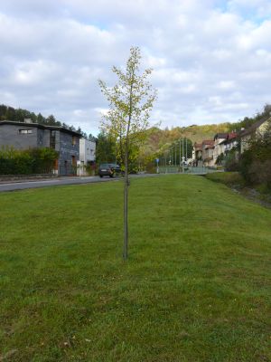 Letos se ale nad tímto druhým stromem začalo smrákat. Místní radnice v tomto veřejném prostoru naplánovala výstavbu dětského hřiště a tento strom, který uprostřed pozemku by jaksi bránil dětskému hřišti, byl v procesu EIA (posuzování vlivu na životní prostředí), odsouzen k poražení. Jakmile jsem to zjistil, neváhal jsem a uskutečnil ve spolupráci s místní radnicí všechny potřebné kroky, aby strom, který je dnes již velmi hezkou ozdobou místa, kde se každý den pohybuji, stále rostl a dělal radost. V půlce letošního listopadu, symbolicky v týdnu před státním svátkem se podařilo strom přesadit na místo, které nese od pradávna pomístní jméno spojené se stínadelskou tematikou. O to více mě to potěšilo. Přežije-li zimu, bude odsud (opět z veřejného prostoru) shlížet do kraje a třeba jej zde za několik let objeví parta místních foglarovců - následovníků.