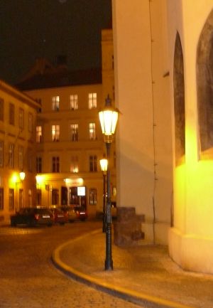 ![]() A protože letos byla opravdu zima, na další debaty a hry už nebylo příliš chuti a času a tak se spěchalo přes uličku Ve Stínadlech za Rychlými šípy na Kafkovo náměstí. Z vrchní terasy budovy pražského magistrátu shlížejí na Kafkovo náměstí směrem k chrámu sv. Mikuláše a na Staroměstské náměstí.