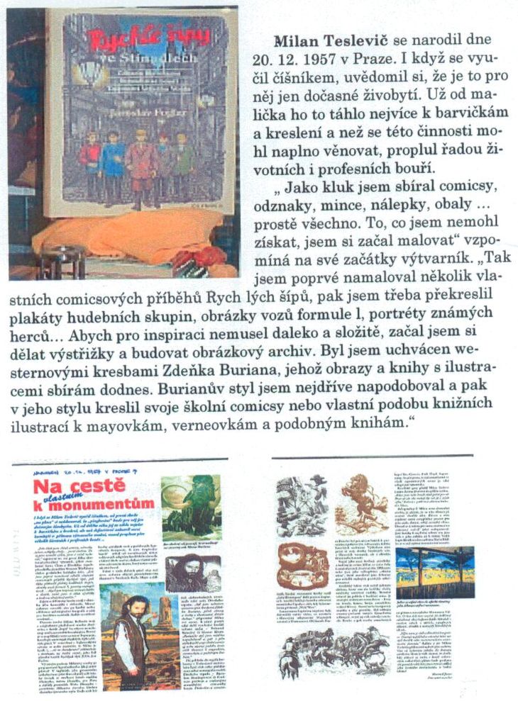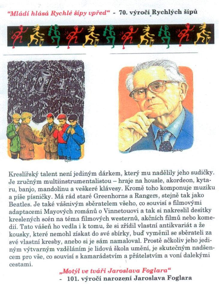 Aktualizováno (provozní doba Infocentra) 29. 8. K 70. výročí Rychlých šípů a 101. výročí narození Jaroslava Foglara se uskuteční od 1. 9. do 24. 10. 2008 v Praze výstava kreseb Milana Tesleviče (jinak též člena pražské pobočky SPJF).