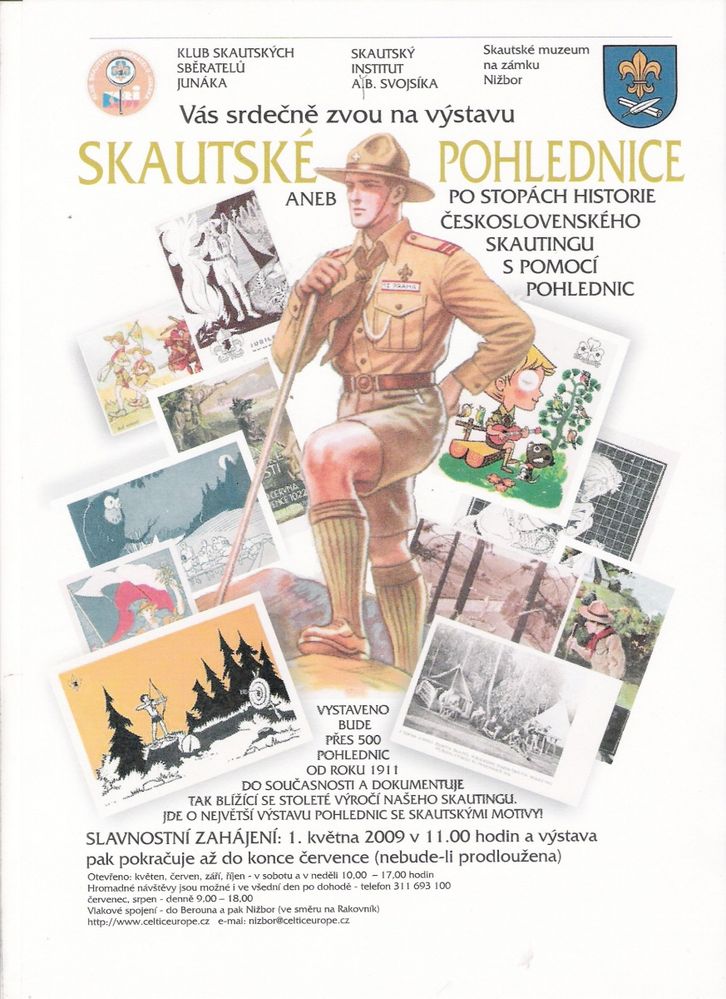 Největší naše výstava skautských pohlednic, která byla otevřena 1. května 2009 v prostorách stálé skautské expozice Skautského institutu A. B. Svojsíka na středočeském zámku Nižbor (okres Beroun), je prodloužena až do 31. října tohoto roku.