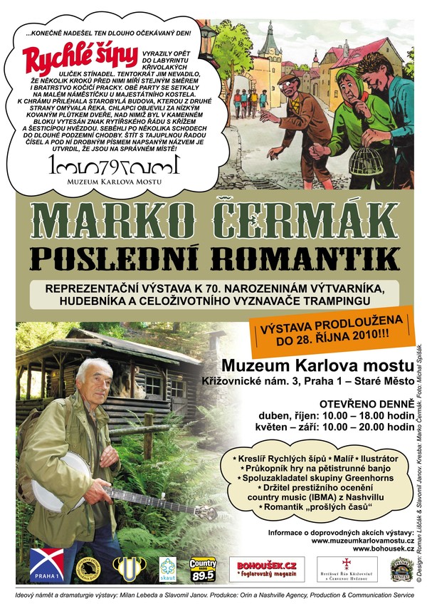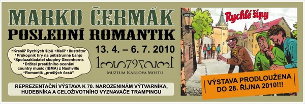 Výstava Marko Čermák: Poslední romantik uspořádaná od 13. 4. 2010 v Muzeu Karlova mostu k 70. narozeninám této výrazné osobnosti hudebního, výtvarného a trampského světa je prodloužena až do 28. 10. 2010!