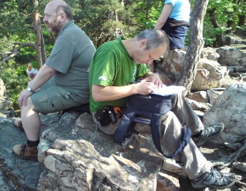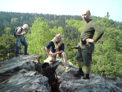Na Brdy za první láskou Jaroslava Foglara[ Autor: Tomáš Hromádka - Krizmen | zařazeno: 2. 5. 2011 | přečteno 17344 ] Poslední dubnový den roku 2011 se členové Pražské pobočky Sdružení přátel Jaroslava Foglara, Akademie Jaroslava Foglara a jejich přátelé vydali na výpravu po stopách první lásky (skautské vůdkyně či rádkyně dívčího oddílu, se kterým se Dvojka na Brdech potkala) Jaroslava Foglara přesně po 85 letech. Členové známého skautského oddílu spolu se svým vůdcem výlet totiž tři dny na Brdech a v okolí prožili ve dnech 30. 4 – 3. 5. 1926. Současně si touto akcí foglarovci připomenuli první z kronikových „reserv“ = nikdy nenapsaných a nedopsaných zápisů v kronikách. Z této výpravy totiž s výjimkou kresbičky v záhlaví s „šifrou“ umístěnou v červeném srdíčku (!) neexistuje žádný zápis ani v oddílové kronice ani v Jestřábově deníku či jeho pozůstalosti. Většina z nás se sešla na Smíchovském nádraží, odkud jsme jeli do Dobřichovic, kde začínala jiná jarní brdská výprava Dvojky před 85 lety. Jelikož předpověď slibovala nejisté počasí, hned na začátku výpravy sledované stylově na mapě Marko Čermáka, jsme se seznámili s oddílovými nálepkami Hochů od Bobří řeky, které se prostřednictvím dávných dvojkařských výroků zaobírají oddílovými rčeními o počasí. Z Dobřichovic jsme vystoupali kolem vily Pellé na brdský hřeben k vyhlídce Hvíždinec (476 m.n.m.). Protože je odsud opravdu krásný výhled na okolní krajinu, a protože toto místo patřilo také k historicky oblíbeným dvojkařským místům, velká část doprovodného programu se odehrála právě zde. Především zde doslova a do písmene řádila Zelená příšera. Kdo na výpravě byl, ví, o čem mluvím. S neotřelým nápadem přišel Slávek, který nás nechal hádat, jakou zelenou barvou potřísnila příšera rákosí v Hoších od Bobří řeky. Navíc jsme následně všechny zelené tekutiny mohli ochutnat, což si všichni nenechali ujít. Na místě měla premiéru další taškařice – hymna Akademie Jaroslava Foglara (společně zpívaný refrén písně Z Bobří hráze od Jana Vyčítala). Rovněž byl přípraven test s třinácti otázkami, které se týkaly Brd, foglarovek, trampingu a vzhledem k tématu výpravy dvě otázky byly i na erotické téma. Účastníci výpravy v testu spíše propadli - slovy Slávka test dopadl p-ř-í-š-e-r-n-ě (vítěz vyhrál se sedmi body z celkových dvanácti možných). Pak následovalo badatelské rokování na téma okolností dávné výpravy. Alpín účastníky seznámil s dosud méně známými fakty (budou uvedena v samostatném článku) a rozproudila se živá diskuse nad záhadnou malůvkou v oddílové kronice s nic neříkajícím matematickým příkladem „2+6=8“. Do debaty se nečekaně zapojili i příchozí náhodní turisté, kteří se rovněž přišli na Hvíždinec podívat. Došlo také na čtení z Knihy o Dvojce, z oddílových kronik, vzpomínku na permutráček, a také na možné okolnosti pojmenování města Spálené Mlýny z Chaty v Jezerní kotlině. Před odchodem se ještě na svůj kraj poprvé podívalo nové vydání kultovní knihy všech milovníků Brd – Toulání po Brdech od největšího znalce a popularizátora tohoto území Jana Čáky – Bažanta. Celý program, který trval téměř tři hodiny, nevěřícně sledovala upletená Bublina, kterou jsme mohli prvně vidět na výstavě S Rychlými šípy nejen do Stínadel v roce 2005. Čas se však nachýlil, a tak, abychom mohli jít dál ve stopách Jaroslava Foglara, rychle jsme se sbalili a vyrazili směrem k baroknímu areálu na Skalce nad Mníškem pod Brdy. Cestou jsme potkávali desítky závodníků, kteří se účastnili cyklistického závodu Trans Brdy. Na Skalce se o slovo přihlásilo počasí, před bouřkou jsme se schovali v kostele sv. Máří Magdaleny a zdejším klášteře. Na zpáteční vlak Praha – Dobříš – Paříž do Mníšku pod Brdy jsme již docela spěchali. Zde skončila naše pouť, která se konala také na počest všech dávných, současných i budoucích lásek děvčat a kluků – vedoucích dětských oddílů nejrůznějších dob, věků i organizací. Nemohli jsme přesně stanovit či kopírovat trasu z dnů před osmdesáti pěti lety, neboť – jak již bylo uvedeno právě tento zápis – jako první vůbec – v kronice od Jestřába schází. Co jsme však cestou vlakem na rozloučenou viděli, bylo „Království“ Dvojky.