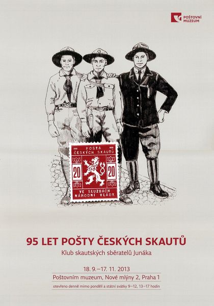 Klub skautských sběratelů Vás zve na výstavu 95 let Pošty českých skautů, která se koná od středy 18. září 2013 v Poštovním muzeu v Praze 1, Nové mlýny 2.