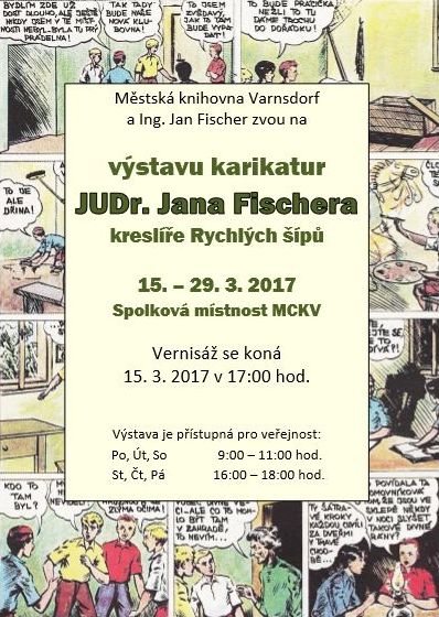 A právě tenhle Červenáček se vůbec poprvé rozhodl podělit s veřejností o ukázky z tatínkovy pozůstalosti. Pozoruhodná výstava se uskuteční ve dnech 15. až 29. března 2017 ve spolkové místnosti v přízemí Městské knihovny Varnsdorf. Vedle dvou panelů věnovaných Rychlým šípům a osobě jejich kreslíře, bude vystavena téměř půlstovka karikatur a ukázky prostorových modelů hlav některých ze slavné foglarovské pětky.