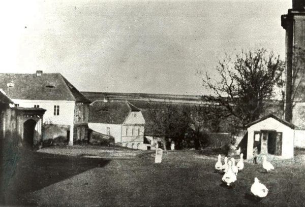 Těsně vedle kostela stála na návsi obecná škola, dvojtřídka. (Snímek pochází z doby před I. světovou válkou.) Sem – spolu s ostatními lidickými dětmi – chodili i členové klubu. Zde se 9. června 1942 naposledy učili. Druhý den už budovu školy zažili jen jako shromaždiště před transportem žen a dětí. Dětí mladších patnácti let. Ty starší již byly zavražděny spolu s muži. Které z dětí nosilo odznak a legitimaci člena KMH Strážci černých lesů?