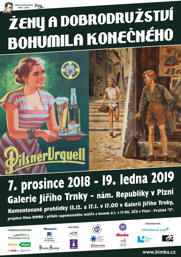V Galerii Jiřího Trnky probíhá od 7. prosince do 19. ledna výstava Ženy a dobrodružství Bohumila Konečného. 13. 12. 2018 a 17. 1. 2019 komentované prohlídky s kurátorem výstavy Janem Hosnedlem 8. 1. 2019 projekce filmu Ladislava Moulise BIMBA - příběh zapomenutého malíře a beseda s kurátorem výstavy Plzeňský rodák Bohumil Konečný přezdívaný Bimba (19. dubna 1918 – 14. ledna 1990) je výjimečný a znovu objevovaný malíř a ilustrátor 2. poloviny 20. století. Bohumil Konečný se v Plzni narodil a až do absolvování reálky zde žil, později se sem vracel za rodiči. Jeho spolužákem byl Miroslav Horníček. Na jejich studentská léta vzpomínal Horníček takto: „Já chodil s Bimbou od první třídy a už tenkrát ho vodili kantoři od třídy ke třídě, aby klukům maloval na tabuli kovboje, koně, indiány. Byl to takový ideál mých klukovských let, milovali jsme společně Douglase Fairbankse a znali jsme se pak ještě na reálce. On maturoval o rok dřív, začali jsme stejně, ale já tercii opakoval. Tak mi o rok unikl.“ V Plzni vznikla Konečného slavná školní karikatura profesorského sboru kulometná rota, jeho první ilustrace pro časopisy Ahoj, Humoristické listy, Rozruch, ilustrace pro knihy Jaroslava Foglara Boj o první místo a Přístav volá či erotické Intimní obrazy. Touto výstavou se Bohumil Konečný - Bimba do Plzně symbolicky vrací. Ani galerie Jiřího Trnky nebyla vybrána náhodou – zde byla v roce 2006 veřejnosti poprvé představena kulometná rota a další reprodukce díla Bohumila Konečného na výstavě Poselství jednoho století. Tato výstava nastartovala nový zájem o tvorbu Bohumila Konečného - následovala dvojice velkých výstav originálů Bohumila Konečného v Západočeském muzeu v Plzni v roce 2007 a v Obecním domě v Praze v roce 2008 kurátorů Jana Hosnedla a Františka Ulče. V rámci výstav vznikla i monografie Tomáše Pospiszyla Bohumil Konečný, dokumentární film Ladislava Moulise Bimba - příběh zapomenutého malíře a webové stránky www.bimba.cz. V dubnu 2018 uplynulo 100 let od narození Bohumila Konečného. Na tento rok připravil Jan Hosnedl a Středoškolský klub čtveřici vzpomínkových výstav v místech úzce spjatých s Konečného životem – proběhly výstavy v Mariánské Týnici na severním Plzeňsku, v Praze ve Villa Pellé, po plzeňské výstavě bude následovat v květnu - červenci 2019 výstava na zámku ve Zlíně. V rámci tohoto projektu vznikla i kniha Jana Hosnedla Ženy a dobrodružství Bohumila Konečného, nakladatelství Albatros vydalo slavný komiks autorské dvojice Jaroslav Přibík - Bohumil Konečný Zuzanka a její svět. Celý projekt BOHUMIL KONEČNÝ-BIMBA, 1918-2018 finančně podpořilo statutární město Plzeň, Plzeňský kraj a řada dalších subjektů. Město Plzeň projekt zahrnulo do projektu osmičkových výročí. Záštitu nad výstavou převzali hejtman Plzeňského kraje Josef Bernard, primátor města Plzně Martin Baxa a člen zastupitelstva města Plzně Petr Náhlík. Výstava v Plzni bude zahrnovat výběr toho nejlepšího z tvorby Bohumila Konečného – budou zde k vidění originály jeho dětských a studentských kreseb, ilustrace a obálky pro prvorepublikové časopisy Rozruch, Mladý hlasatel, poválečný časopis Vpřed, originály z knih Otakara Batličky a Jaroslava Foglara (včetně Přístavu volá, který vznikl v Plzni). Výstava představí v Plzni poprvé i originální obálky Konečného z Humoristických listů, originály plakátů pro firmu Baťa či poválečný export, poprvé budou v Plzni vystaveny erotické Intimní obrazy. Bohumil Konečný je mistrem dynamických dobrodružných ilustrací a kreseb krásných žen. Je známý jako ilustrátor knih Jaroslava Foglara a Otakara Batličky, je ale i autorem řady reklamních plakátů. Jeho kariéru velmi negativně poznamenala aféra s komiksovou hrdinkou Amazonou – Octobrianou. Kája Saudek o Bohumilu Konečném napsal: „Konečný, to byl člověk, který uměl v roce třicet sedm nebo třicet osm to, co dnes v Americe umí sotva pár desítek malířů. Byl neporovnatelný s čímkoli. Tento Bohumil Konečný, zcela zapomenut a za života neuznán, byl absolutní génius, který už jen tak nebude. To, co umím, mě naučil on.“ Další fotografie naleznete zde: https://www.plzen.eu/obcan/aktuality/aktuality-z-mesta/galerie-v-plzni-zve-na-vystavu-vyjimecneho-malire-a-ilustratora-bohumila-konecneho.aspx Ženy a dobrodružství Bohumila Konečného, 7. 12. 2018 – 19. 1. 2019, Galerie Jiřího Trnky, nám. Republiky 40, Plzeň Pořadatelé: Středoškolský klub ASK ČR při Gymnáziu v Plzni a Unie výtvarných umělců Plzeň, z.s. Kurátor výstavy: Jan Hosnedl Otevírací doba: úterý – neděle: 10.00 – 12.00, 13.00 – 17.00, galerie je uzavřena 25.12. 2018 a 1. 1. 2019 Doprovodný program: 13. 12. 2018 a 17. 1. 2019 komentované prohlídky s kurátorem výstavy Janem Hosnedlem 8. 1. 2019 projekce filmu Ladislava Moulise BIMBA - příběh zapomenutého malíře a beseda s kurátorem výstavy v Galerii 13 v Pražské ulici, moderuje Jiří Hlobil Další informace: www.bimba.cz