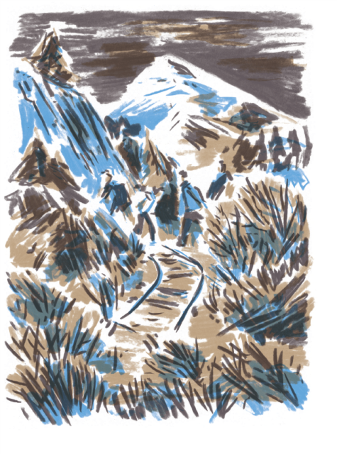 Ilustrace vystihující mimo jiné tajemnost i rozervanost neznámé krajiny vytvořil Jindřich Janíček, nedávno oceněný titulem ilustrátor roku Czech Grand Design 2018.