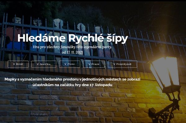 Dnes odstartoval další ročník tradiční pátrací hry Sdružení přátel Jaroslava Foglara Hledáme Rychlé šípy. Figuríny pětice chlapců se ukrývají v uličkách Prahy, Brna, Plzně, Prostějova a Jevíčka a hledat je můžete až do 17. prosince.