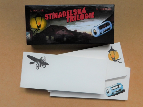 Tři lepené papírové poznámkové bloky s motivem létacího kola Jana Tleskače, ježka v kleci a stínadelské plynové lampy připravilo Vydavatelství Václav Vávra. K potisku byly zvoleny kresby Marko Čermáka z komiksové stínadelské trilogie.
