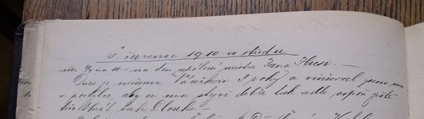 6. července 1910 ve středu večer ¾ na 10 - na den upálení mistra Jana Husi. –