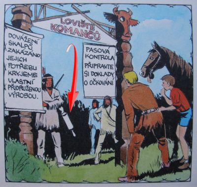 Pozorní čtenáři Rychlých šípů zajisté potvrdí, že některé detaily kreseb skrývají v sobě určitá tajemství (a je to tak dobře). Jedním z takových detailů, který se nám nedaří rozšifrovat, je předmět, který je v příběhu Rychlonožkův indiánský sen zobrazen (zavěšen?) u pasu indiána střežícího bránu lovišť Komančů.