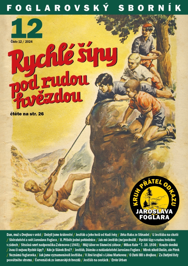 Všem příznivcům, odběratelům a čtenářům Sborníku, který vydává Kruh přátel odkazu JF, dáváme na vědomost, že vychází již 12. číslo.Z jeho obsahu i na jeho podrobnou četbu se těší i samotné Rychlé šípy. Trochu jsme je vyzpovídali: Rychlonožka: Já se nejvíce těším na titulní obrázek, už je to dávno, co nás mohli čtenáři při takové odvážné akci, kterou řídím, vidět. Jindra Hojer: Já si moc rád přečtu, jaký byl člen Dvojky Dan, myslím, že se mi dost podobal. Červenáček: Já jsem se někdy vydával na cesty docela sám, tak mne budou zajímat zahraniční cesty Jestřába. Jarka Metelka: Já mám rád luštění záhad, a tak mne bude zajímat ten příběh nás RŠ, jak jsme se málem dostali na stránky Junáka a proč vydávání našich příběhů muselo skončit. Mirek Dušín: Mně bude moc zajímat, zda Zdeněk Pírek měl právo nosit jako přezdívku moje jméno Mirek. A tak věříme, že i Vy si s chutí pročtete zajímavé statě, které jsme pro Vás po roce opět připravili. Dvanáctý sborník si můžete objednat v druhé polovině května, stejně jako v minulosti, u Luboše Trkovského (foglarovsky.sbornik@seznam.cz), nebo bude k dostání na foglarovském setkání v Ledči nad Sázavou na hradě v sobotu 22. 6. 2024. Redakce Sborníku |