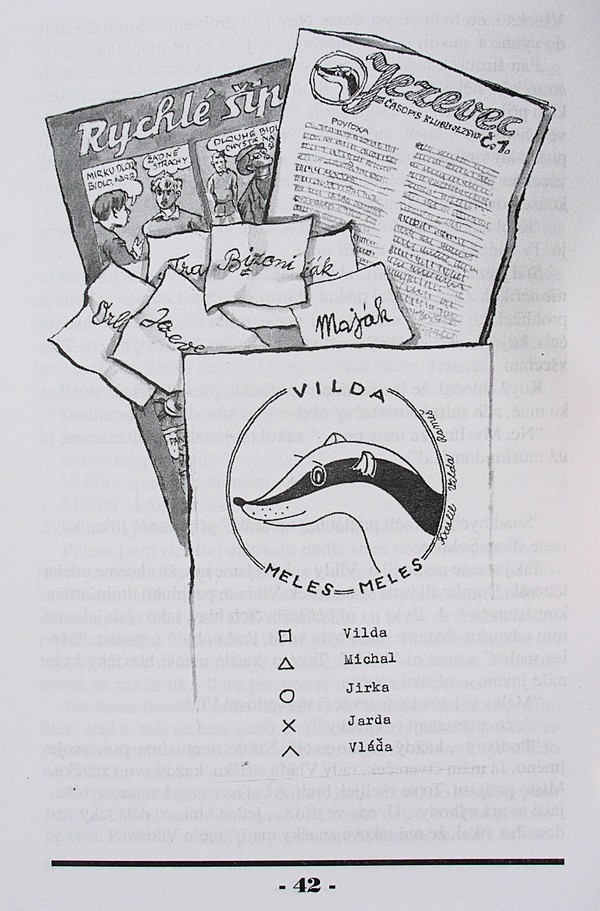 Seznámili jsme se s útlou knížečkou Jezevci z akátové stráně od autora Otakara Štance. Obr. Otakar Štanc (1936) Obr. Knížka Jezevci z akátové stráně Toto svěží dílko popisuje příhody několika kamarádů z pražské periferie, kteří se rozhodnou založit vlastní klub po vzoru Foglarových čtenářských klubů. Děj začíná v posledních měsících 2. světové války a pokračuje v prvním poválečném roce. Knížka poprvé vyšla v roce 1984 jako samizdat, první oficiální vydání (celkově třetí) pak bylo v roce 1993. Foglarovská inspirace je patrná i z jedné ilustrace, kterou uvádíme na přiloženém obrázku. Dokonce se nám podařilo identifikovat i originální kresbu Jana Fischera z příběhu Přistupuje Jindra Hojer, kterou se ilustrátor Spytimír Bursík nepochybně nechal inspirovat. Nesouhlasí jenom text v bublinách, který si ilustrátor zřejmě přesně nepamatoval, či popletl. Porovnejte oba obrázky! Obr. Ilustrace Bursík Obr. Originál Fischer Do jaké míry Jezevci z akátové stráně vycházejí z autorových autentických zážitků se pokusíme zjistit prostřednictvím jeho syna Pavla, kamaráda a kolegy jednoho z členů AJF.
